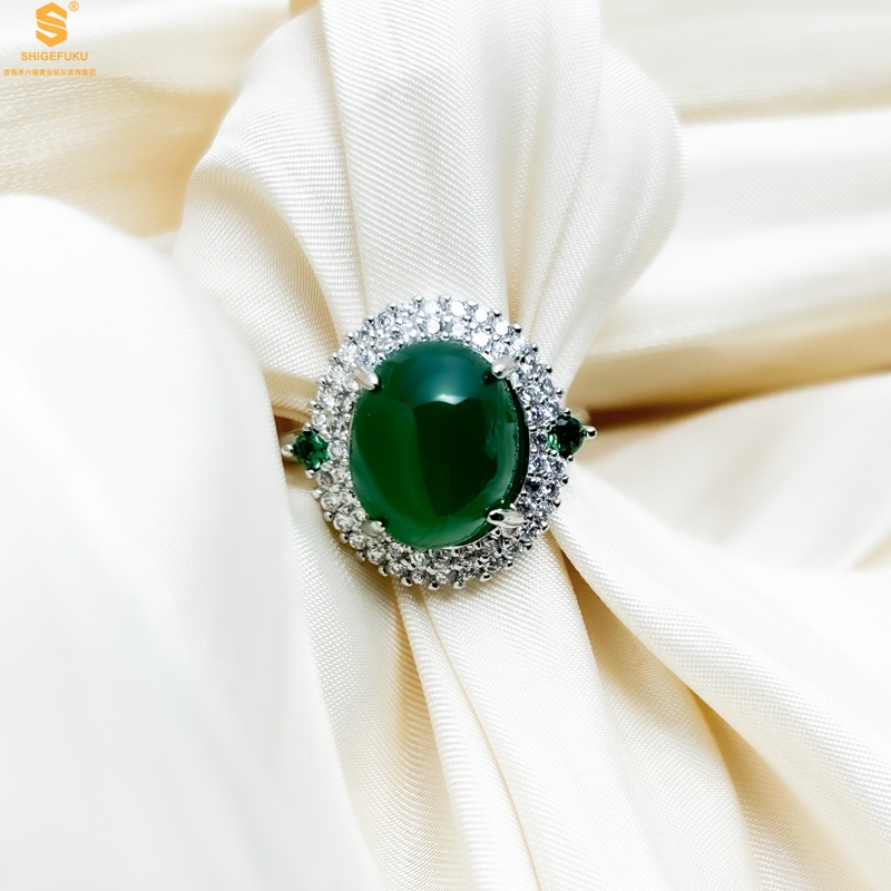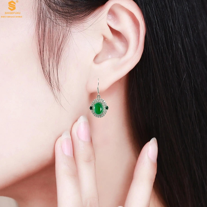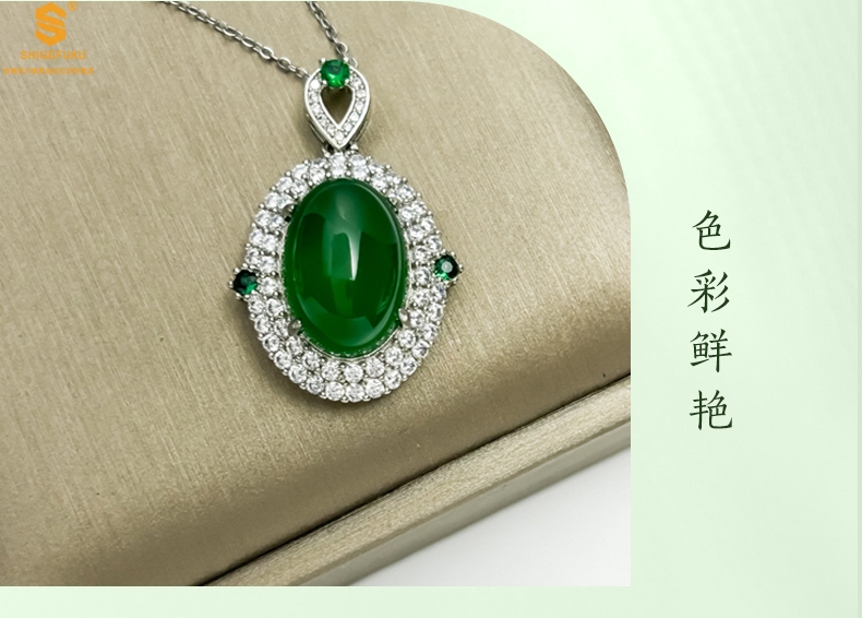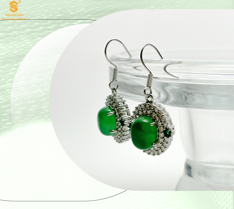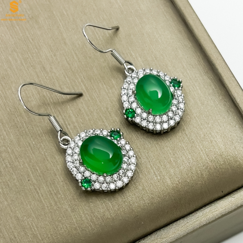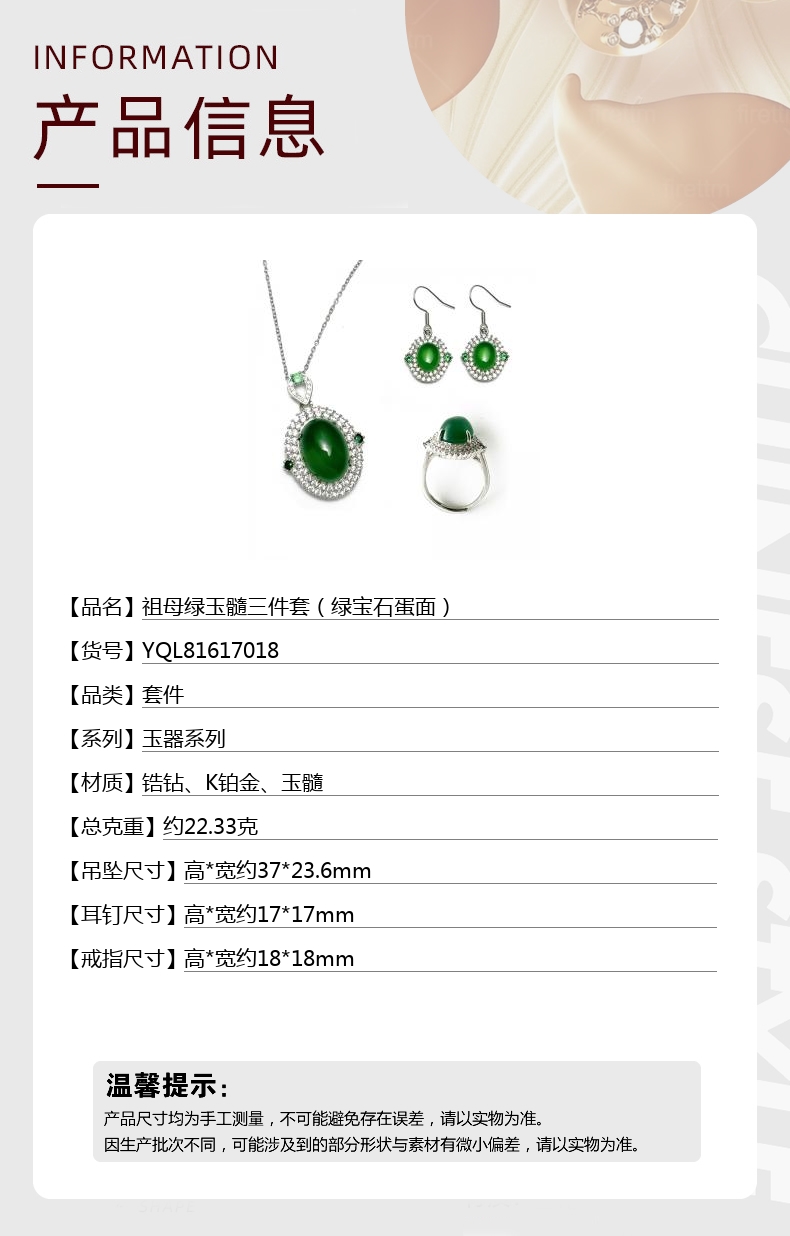 【品名】祖母绿玉髓三件套(绿宝石蛋面)