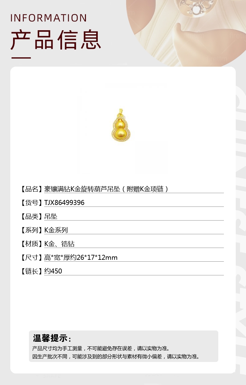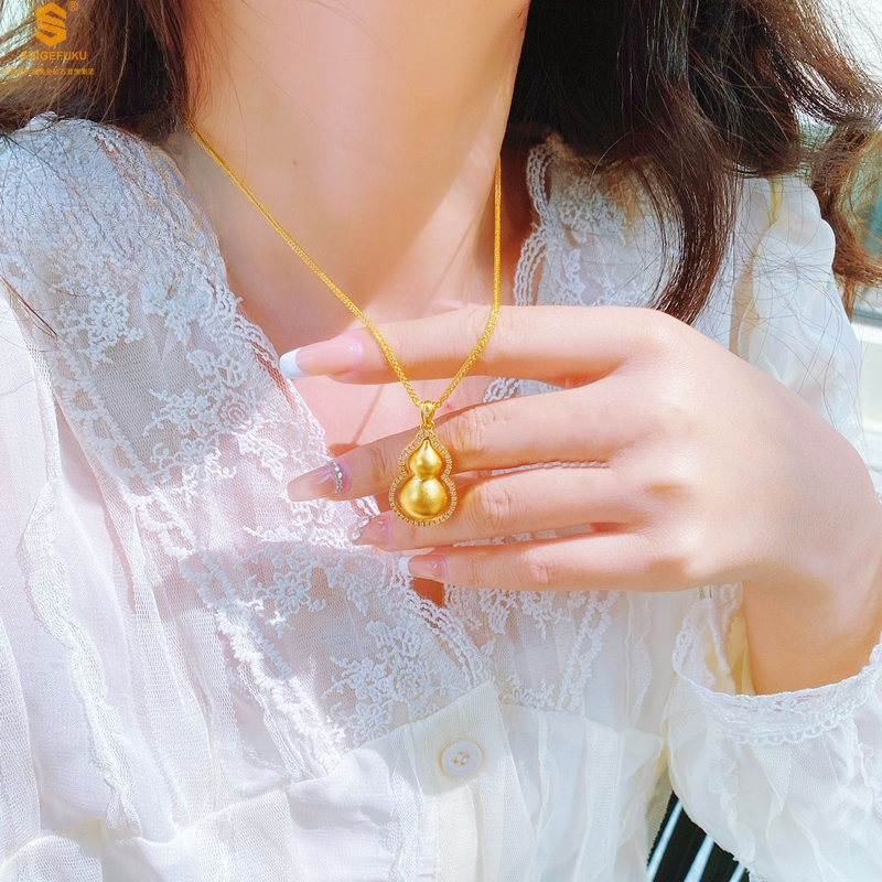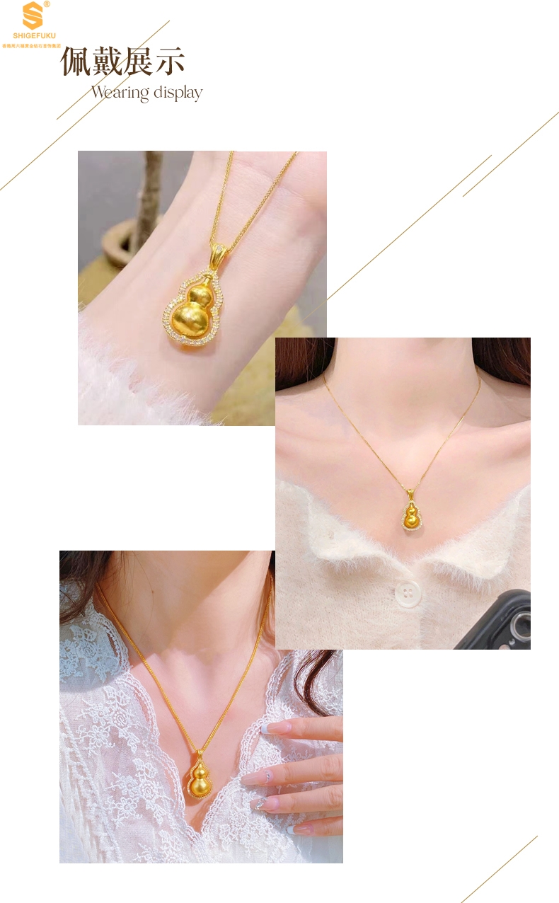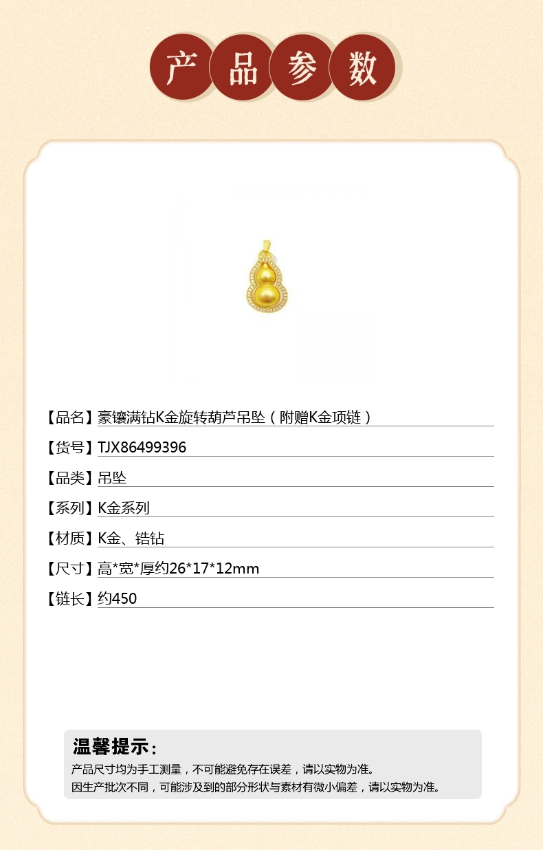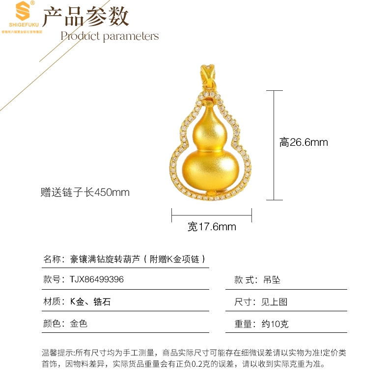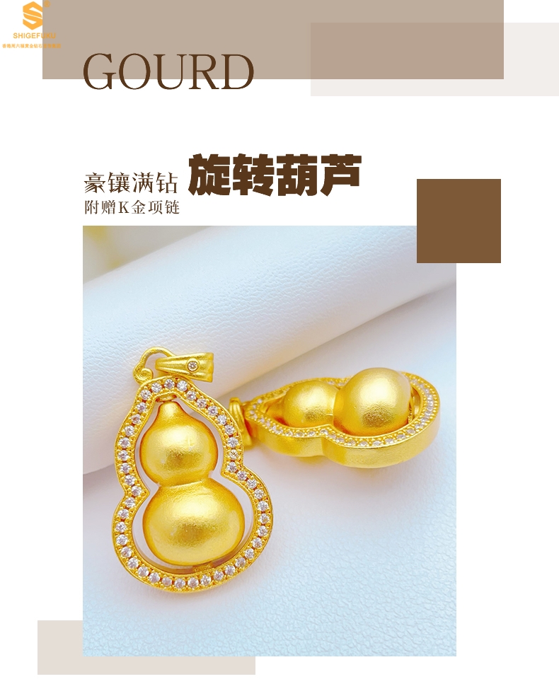 【品名】豪镶满钻K金旋转葫芦吊坠(附赠K金项链)
