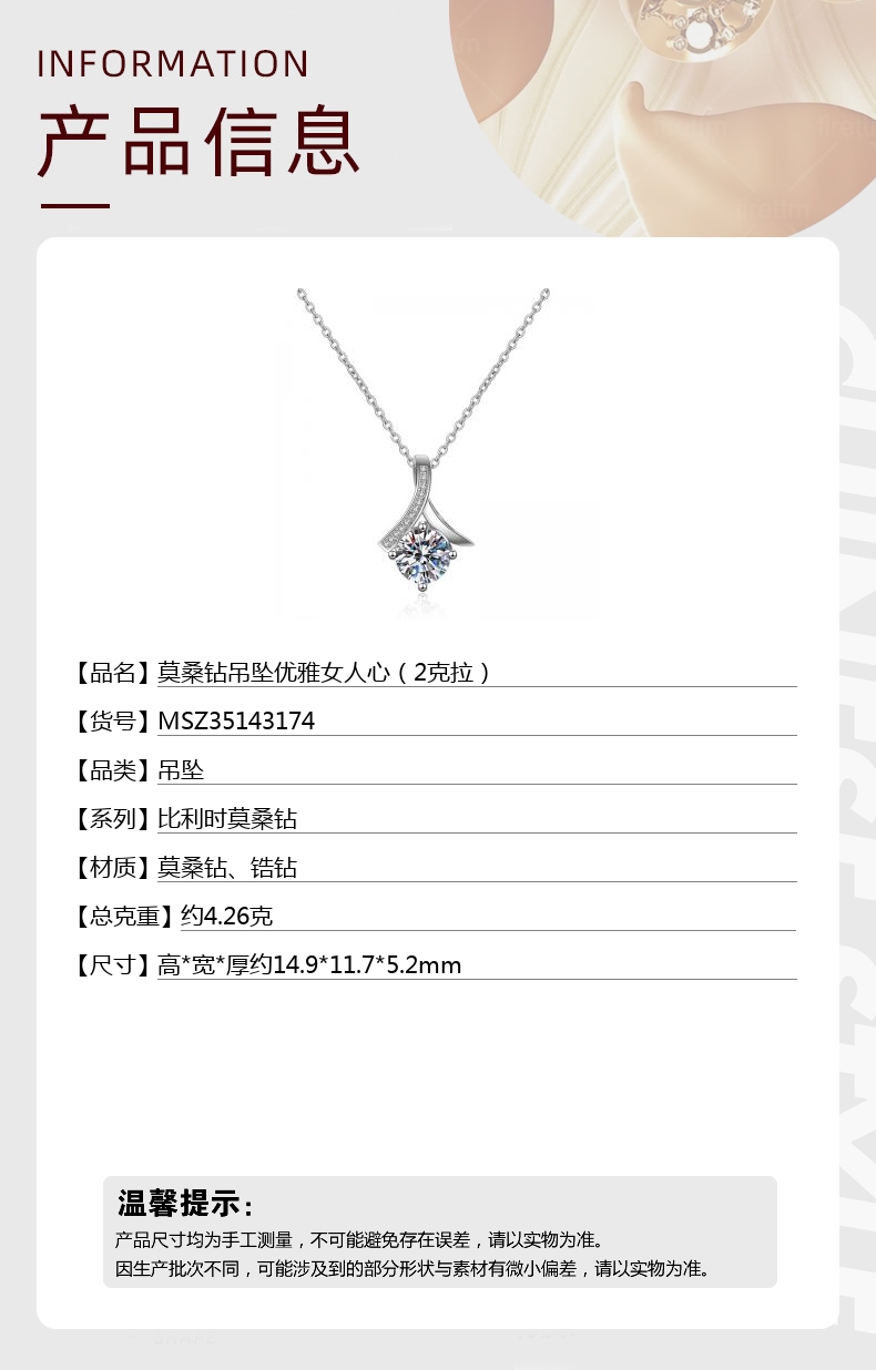 【品名】莫桑钻吊坠优雅女人心(2克拉)