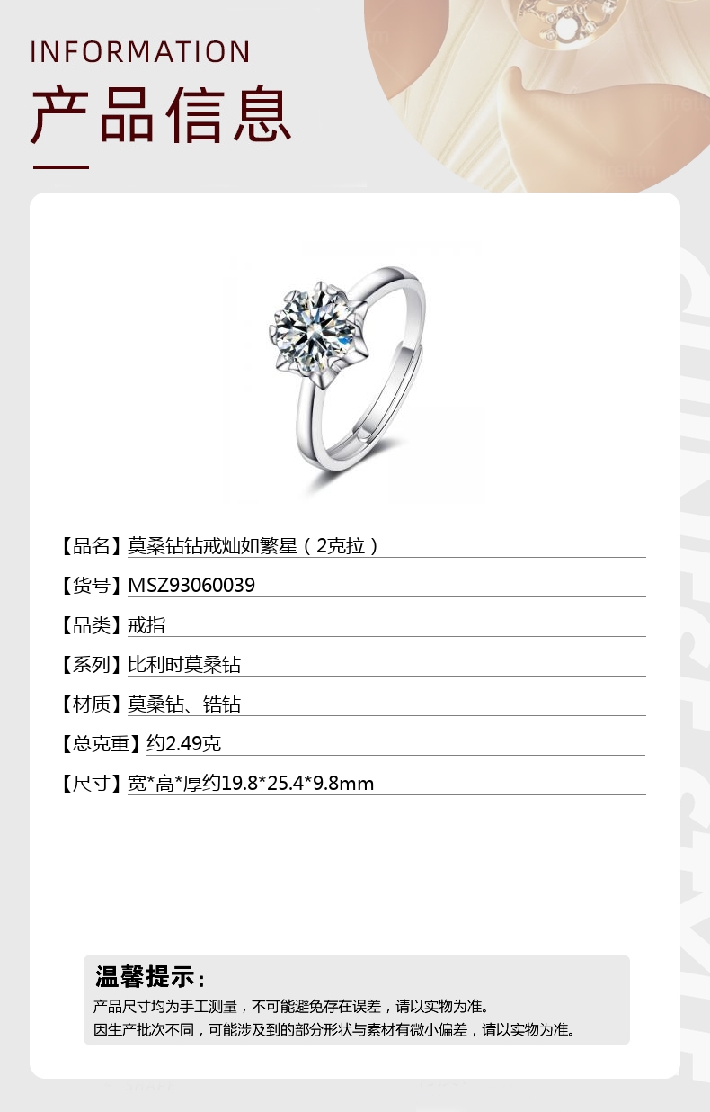 【品名】莫桑钻钻戒灿如繁星(2克拉)