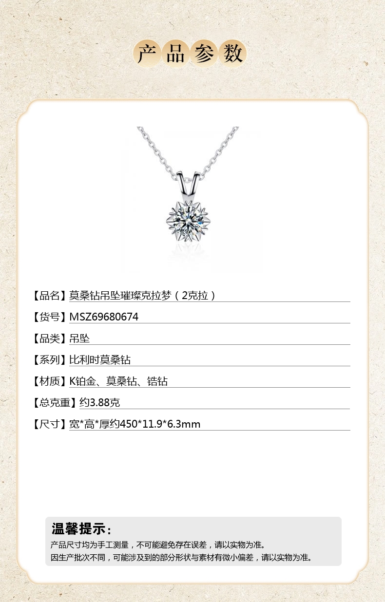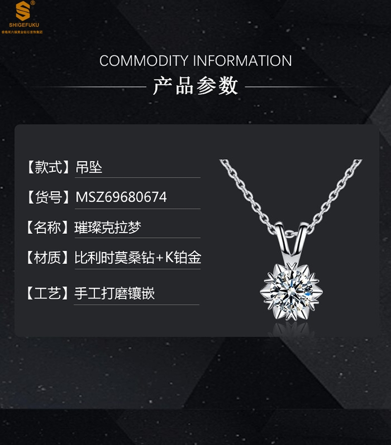 【品名】莫桑钻吊坠璀璨克拉梦(2克拉)