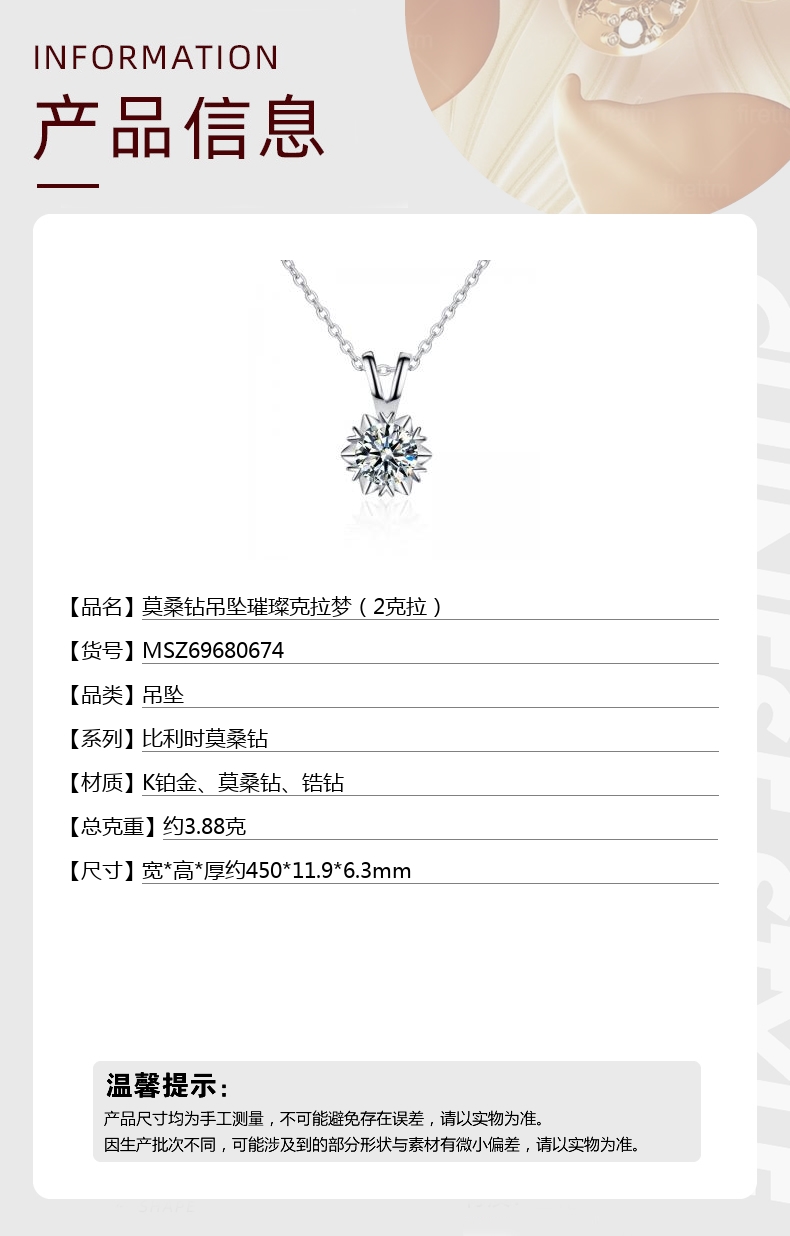 【材质】K铂金、莫桑钻、锆钻