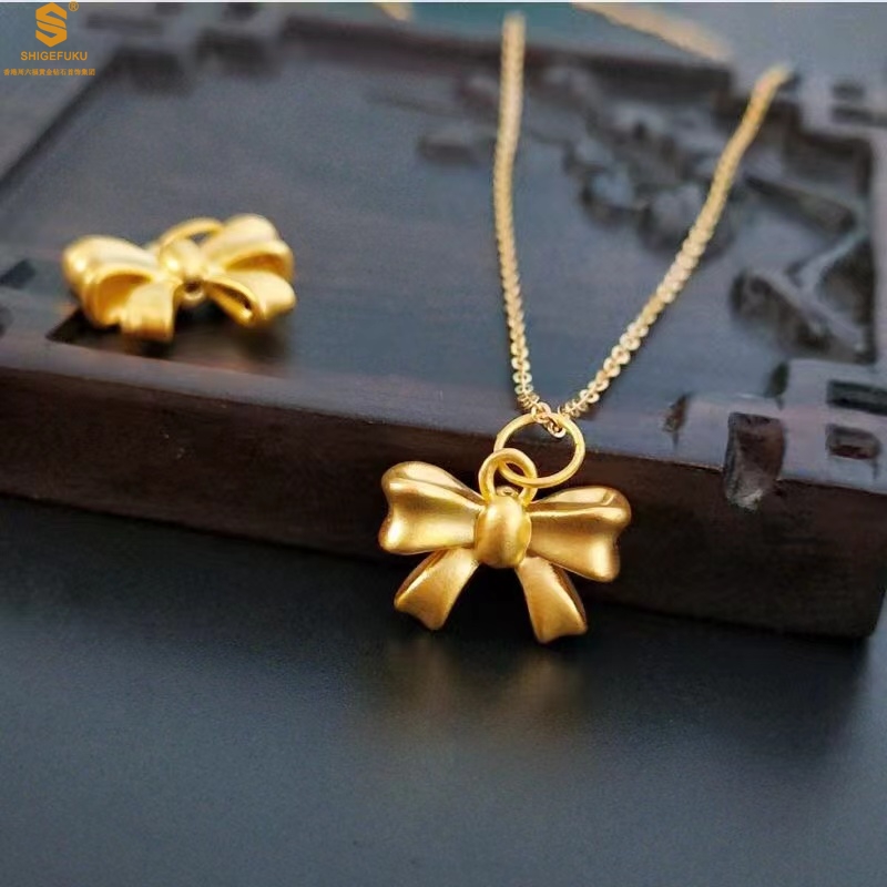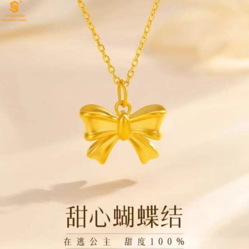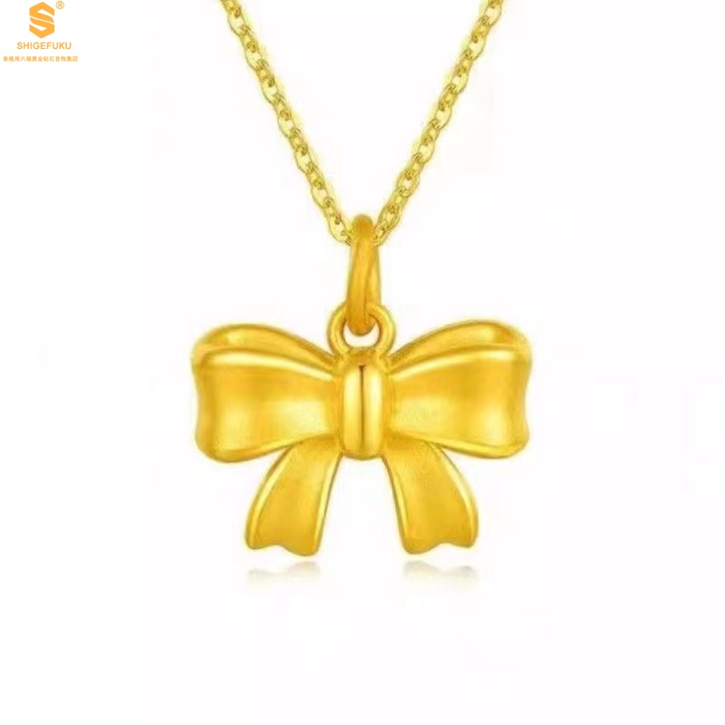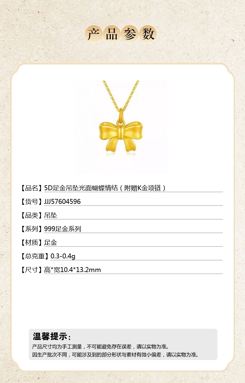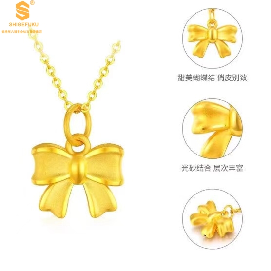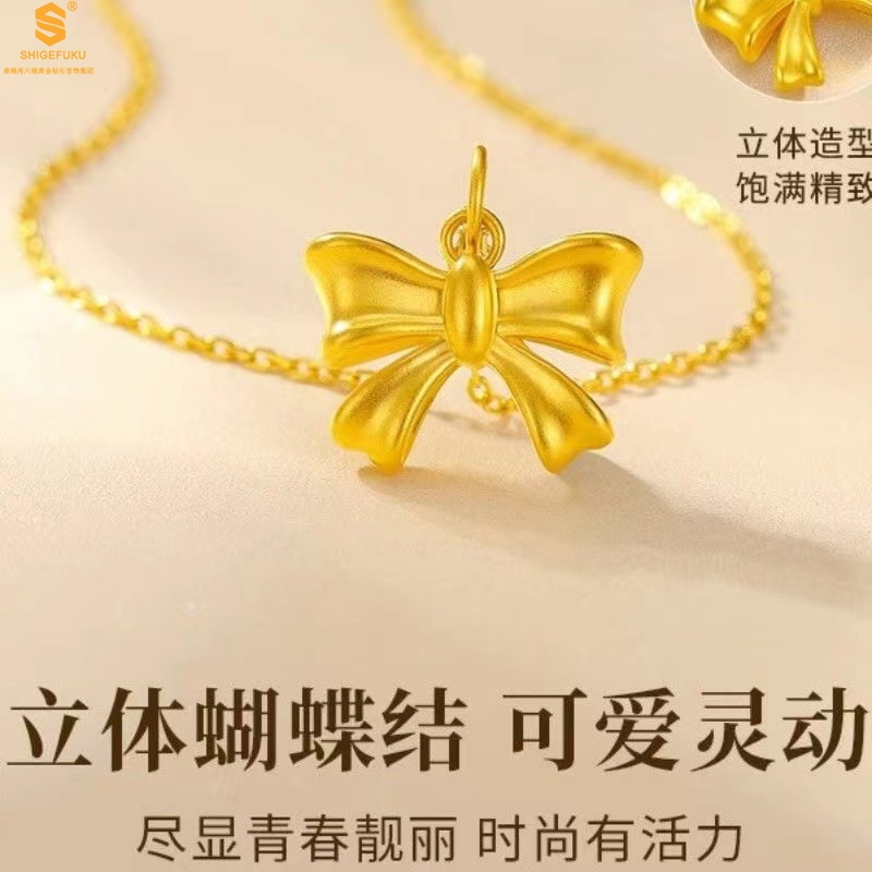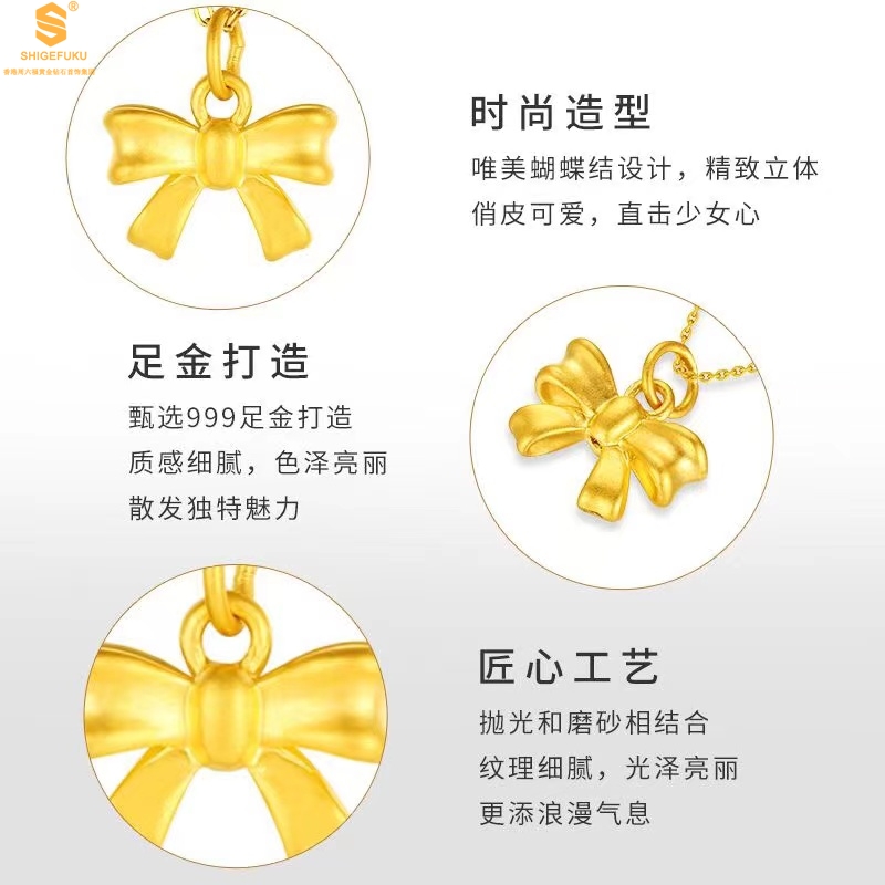 【品名】5D足金吊坠光面蝴蝶情结(附赠K金项链)