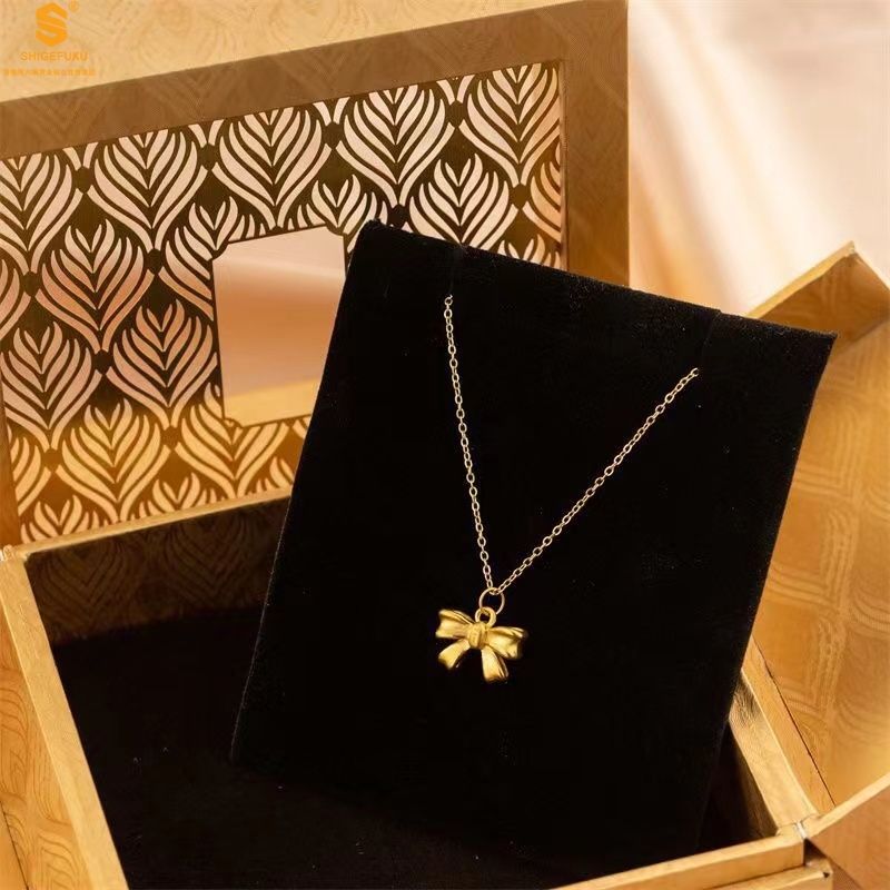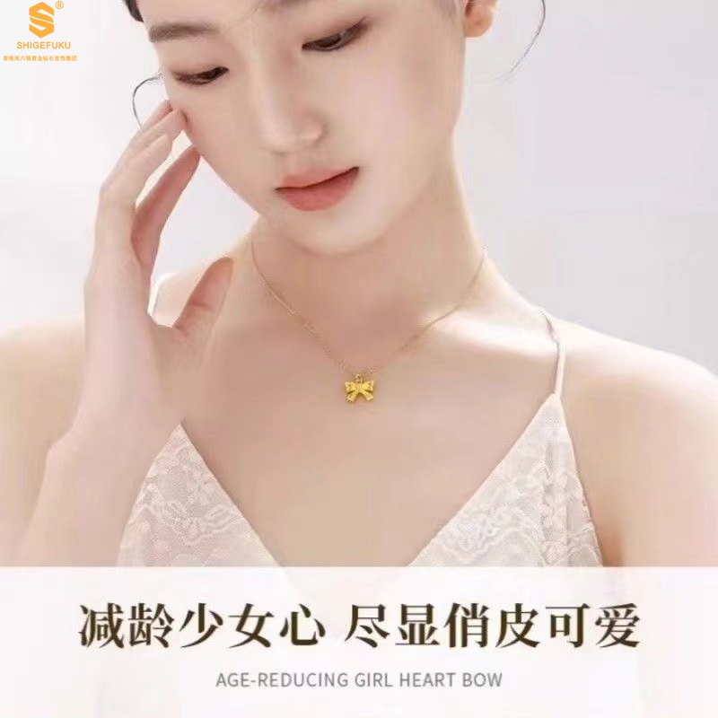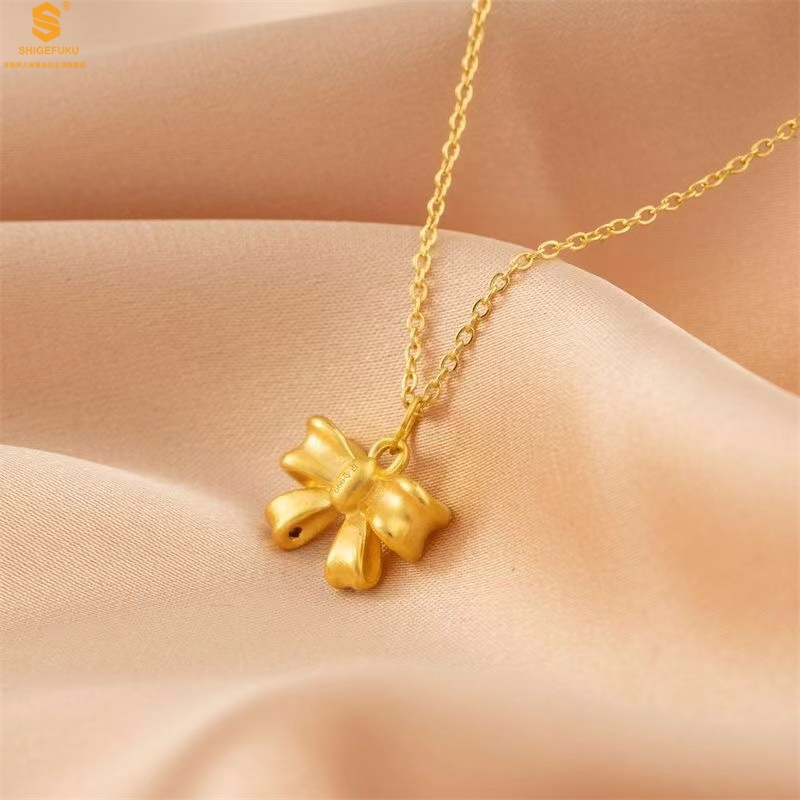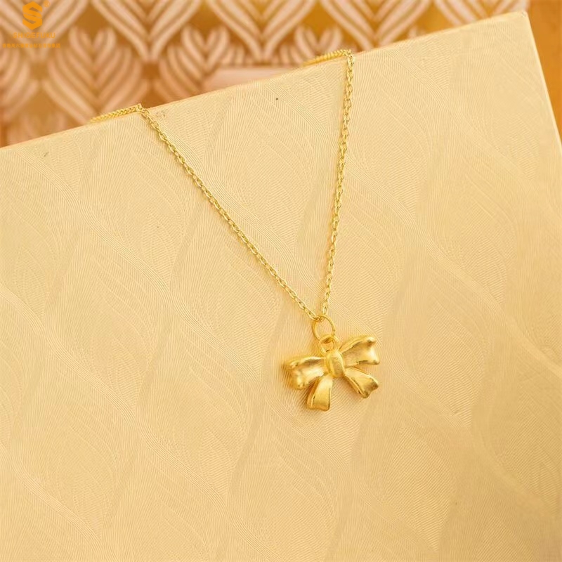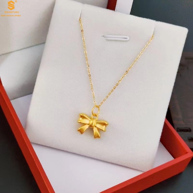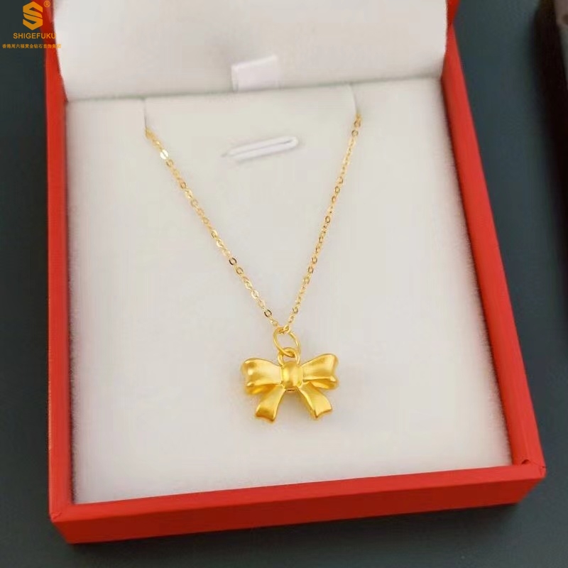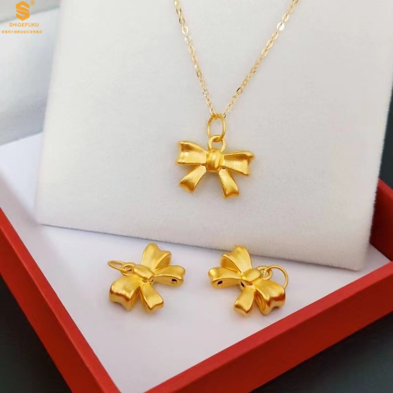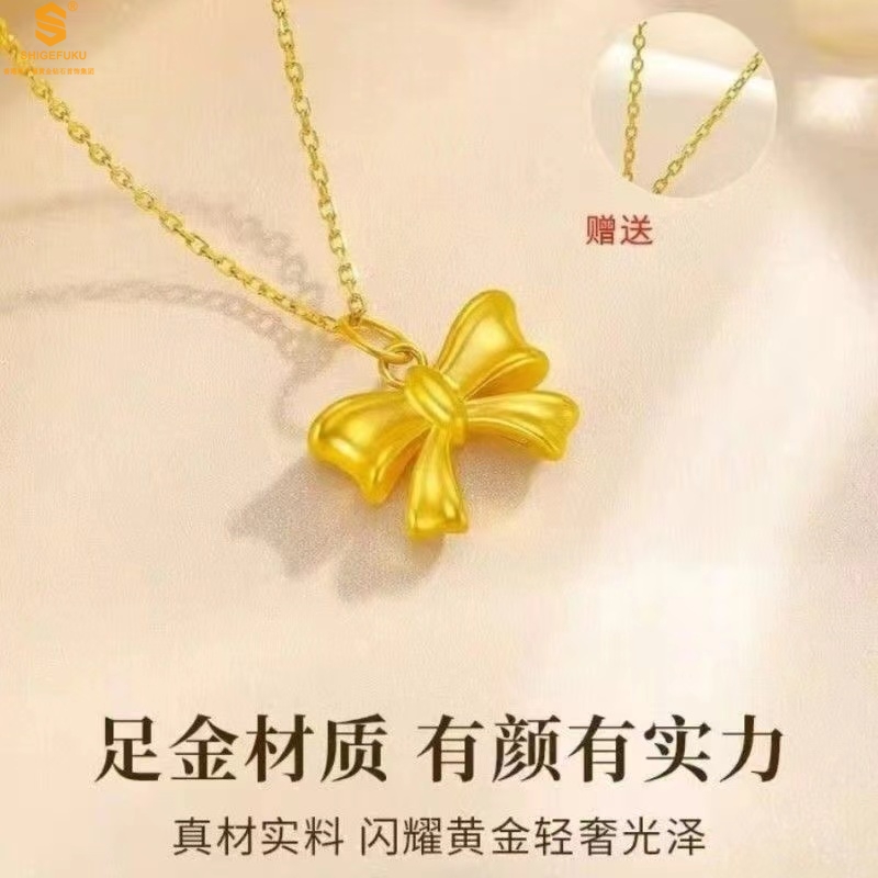 【品名】5D足金吊坠光面蝴蝶情结(附赠K金项链)