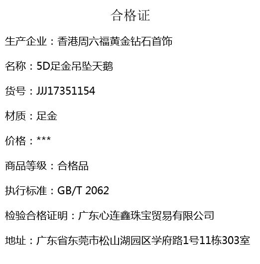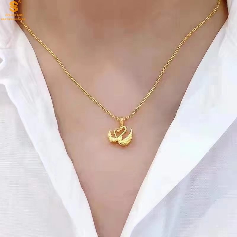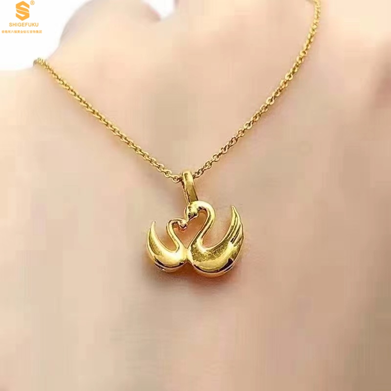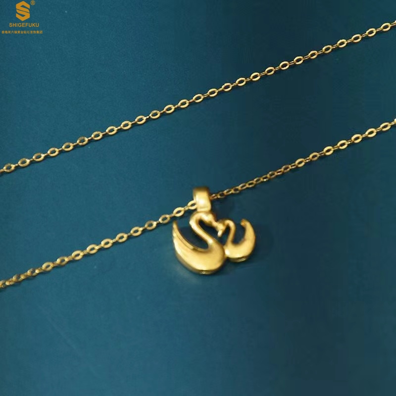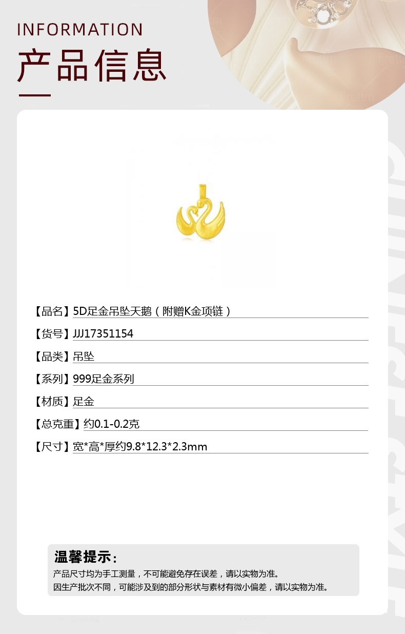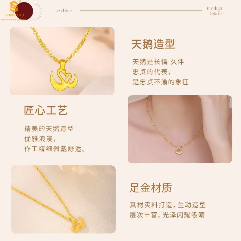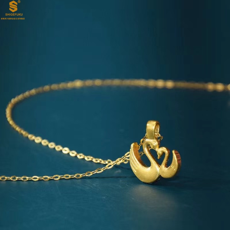 【品名】5D足金吊坠天鹅(附赠K金项链)