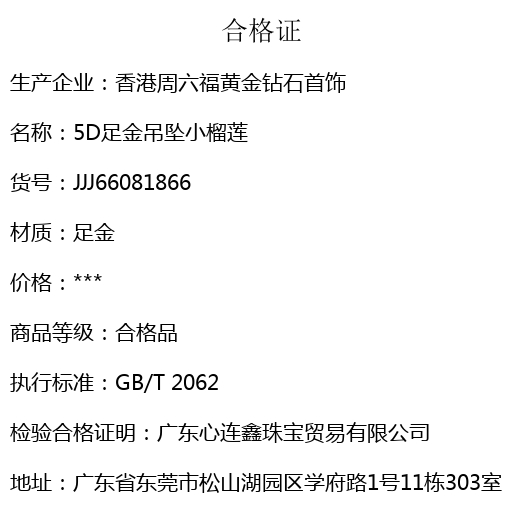 【品名】5D足金吊坠小榴莲(附赠K金项链)