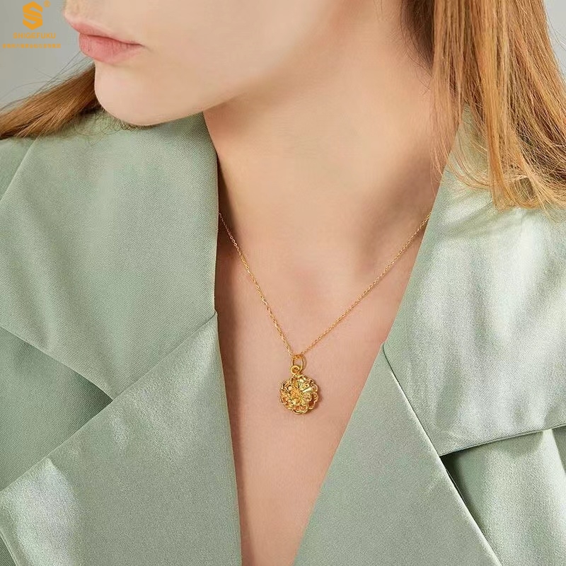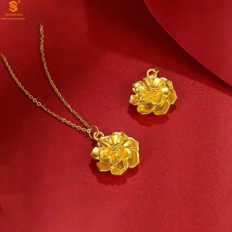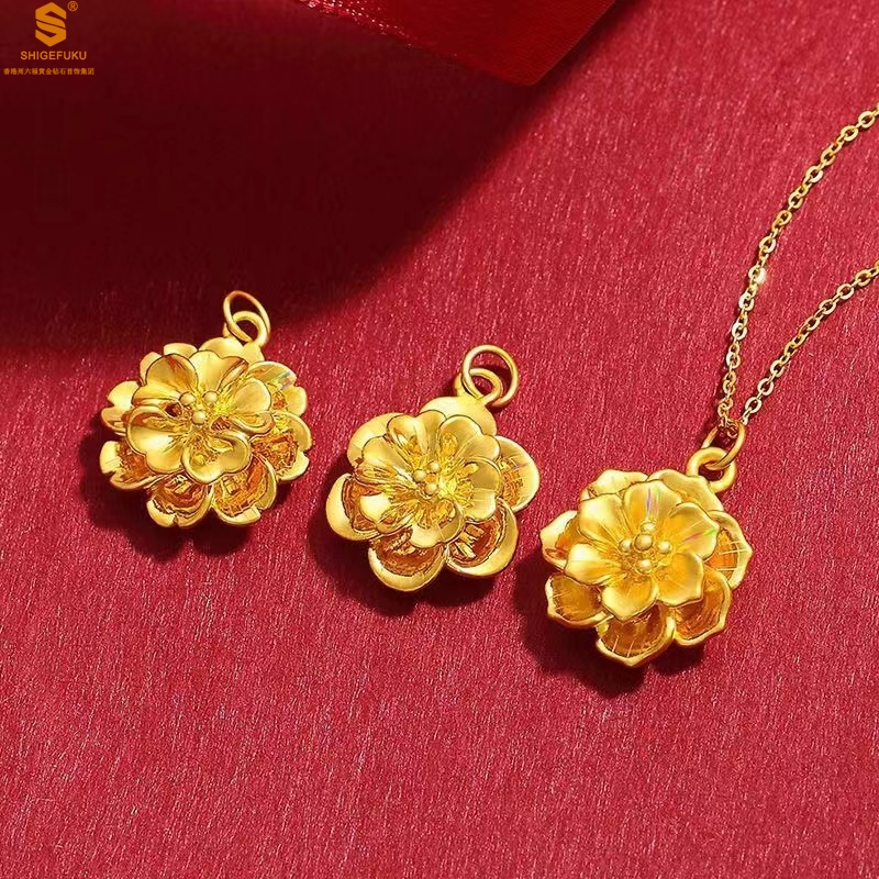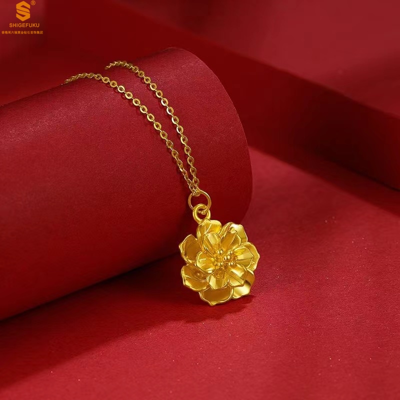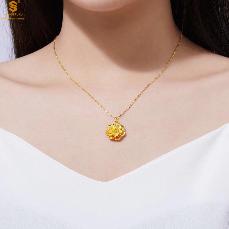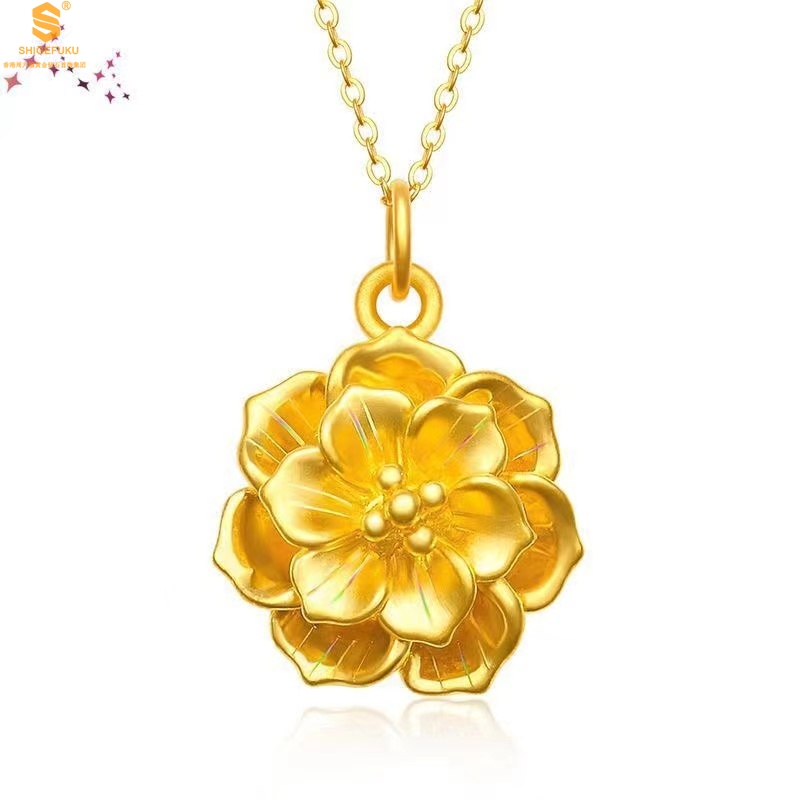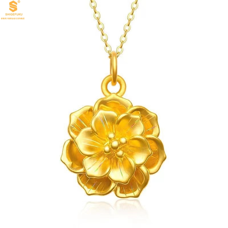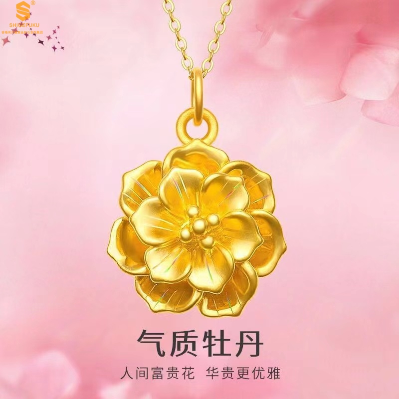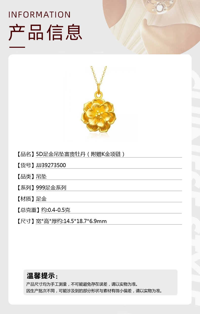 【品名】5D足金吊坠富贵牡丹(附赠K金项链)