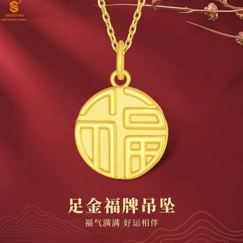 【品名】5D足金吊坠福牌(附赠K金项链)