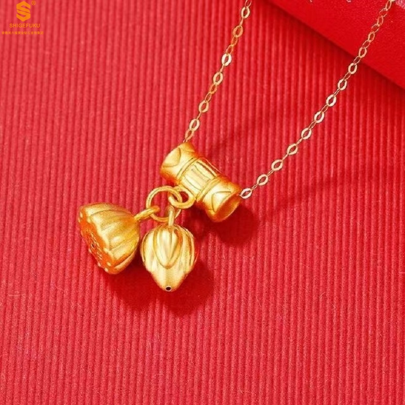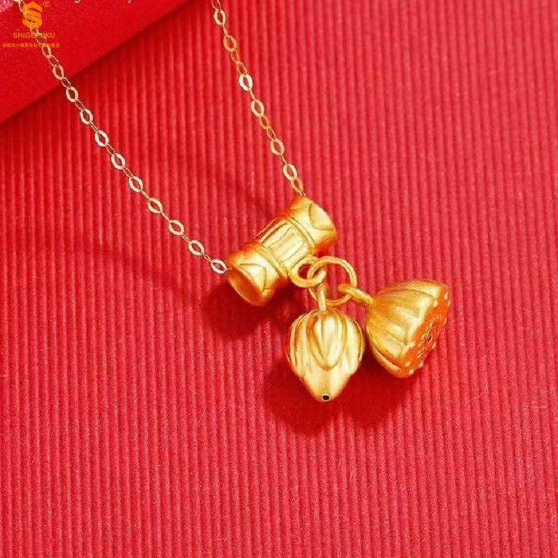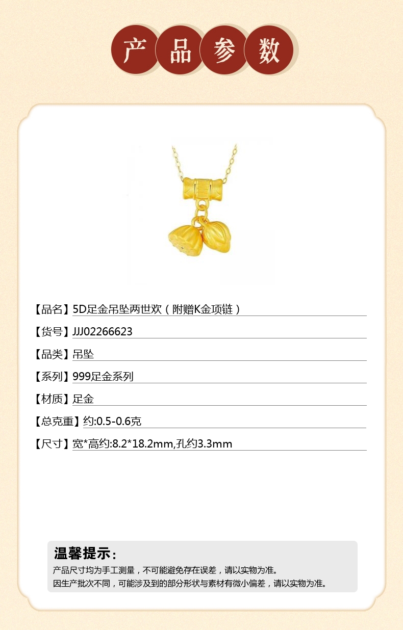 【品名】5D足金吊坠两世欢(附赠K金项链)