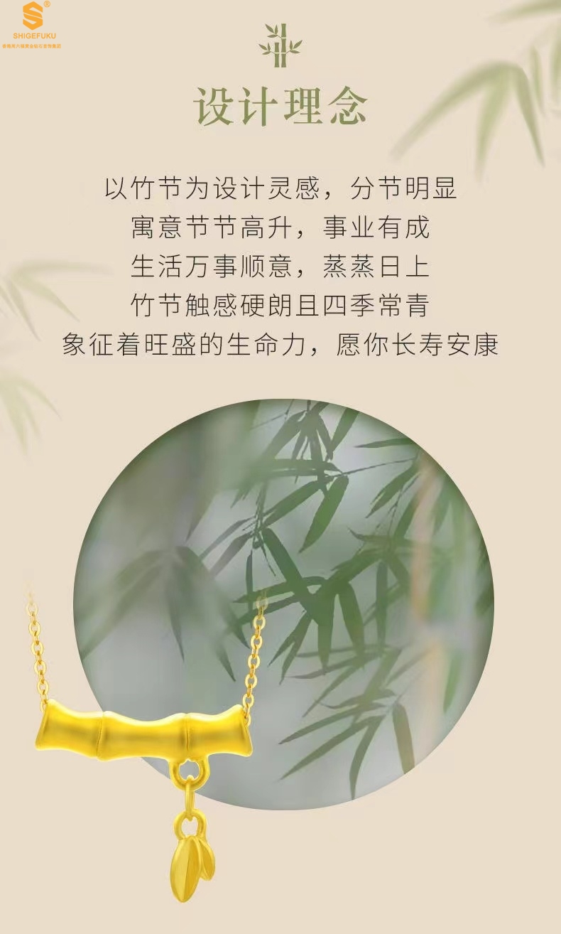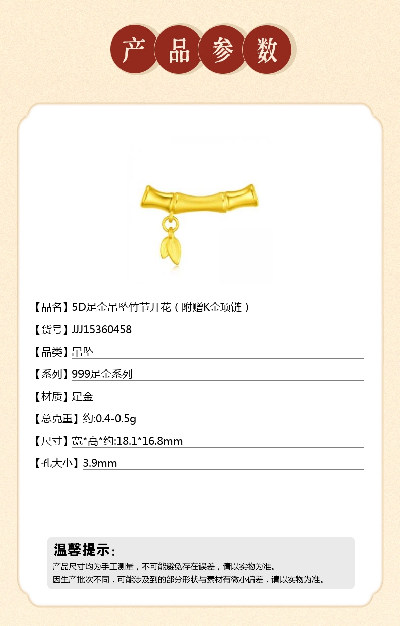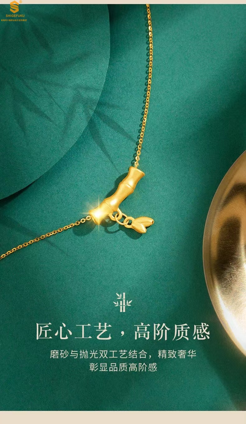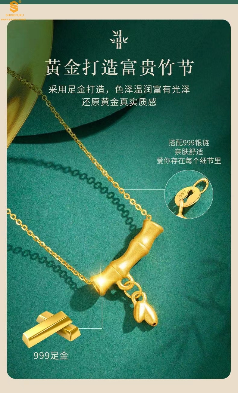 【品名】5D足金吊坠竹节开花(附赠K金项链)