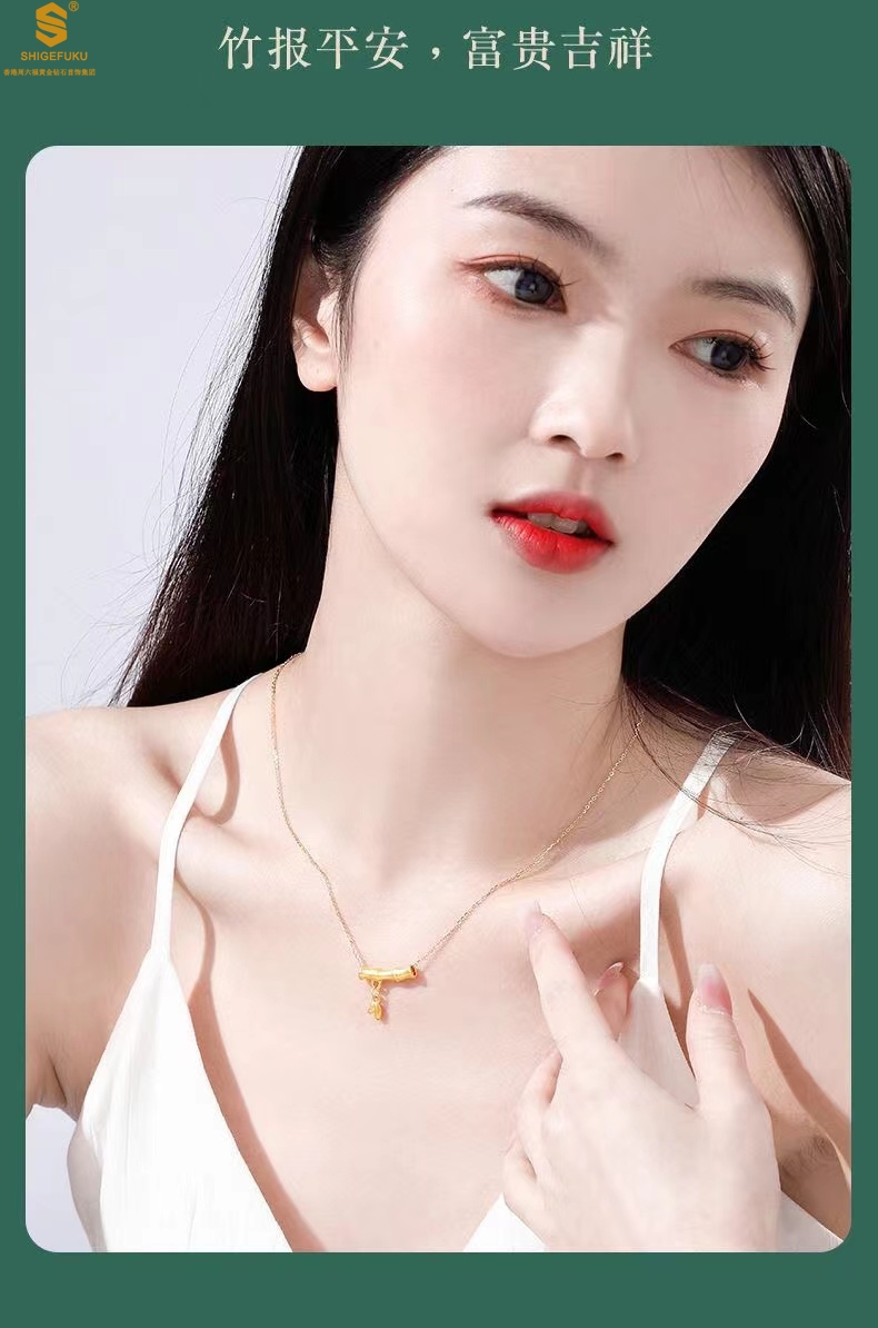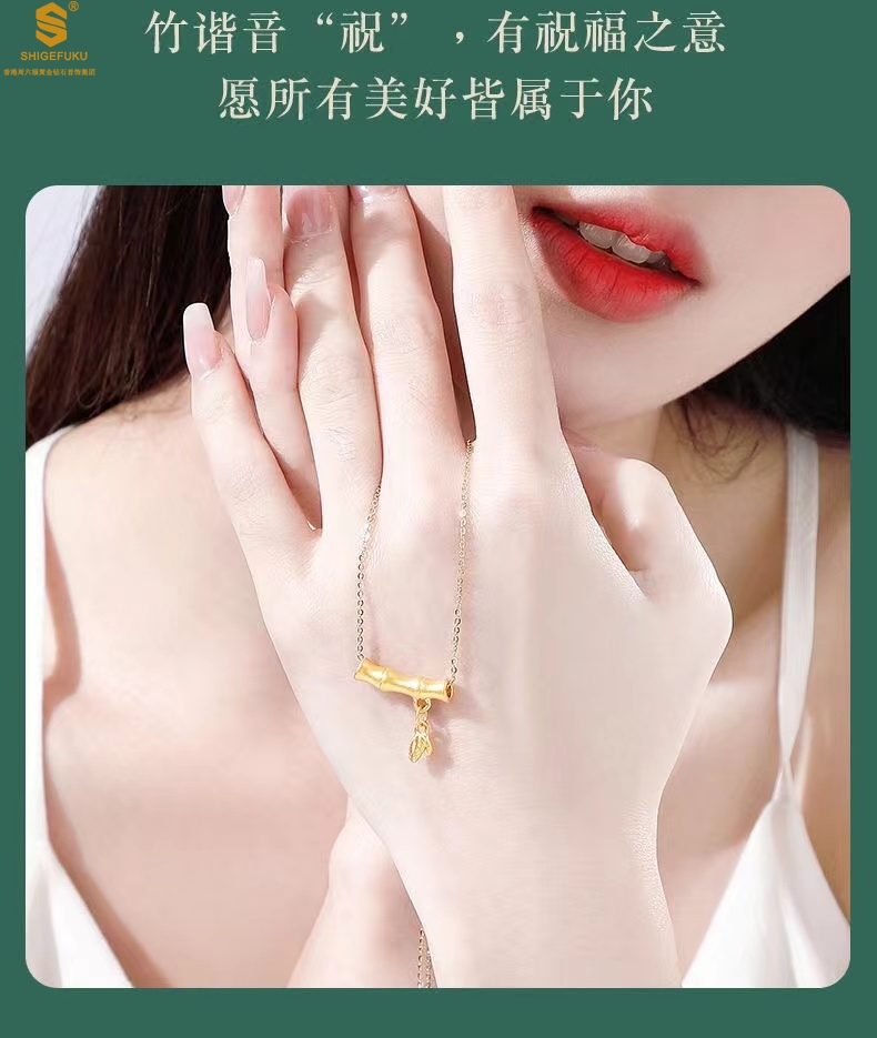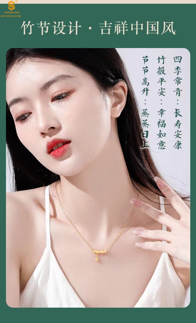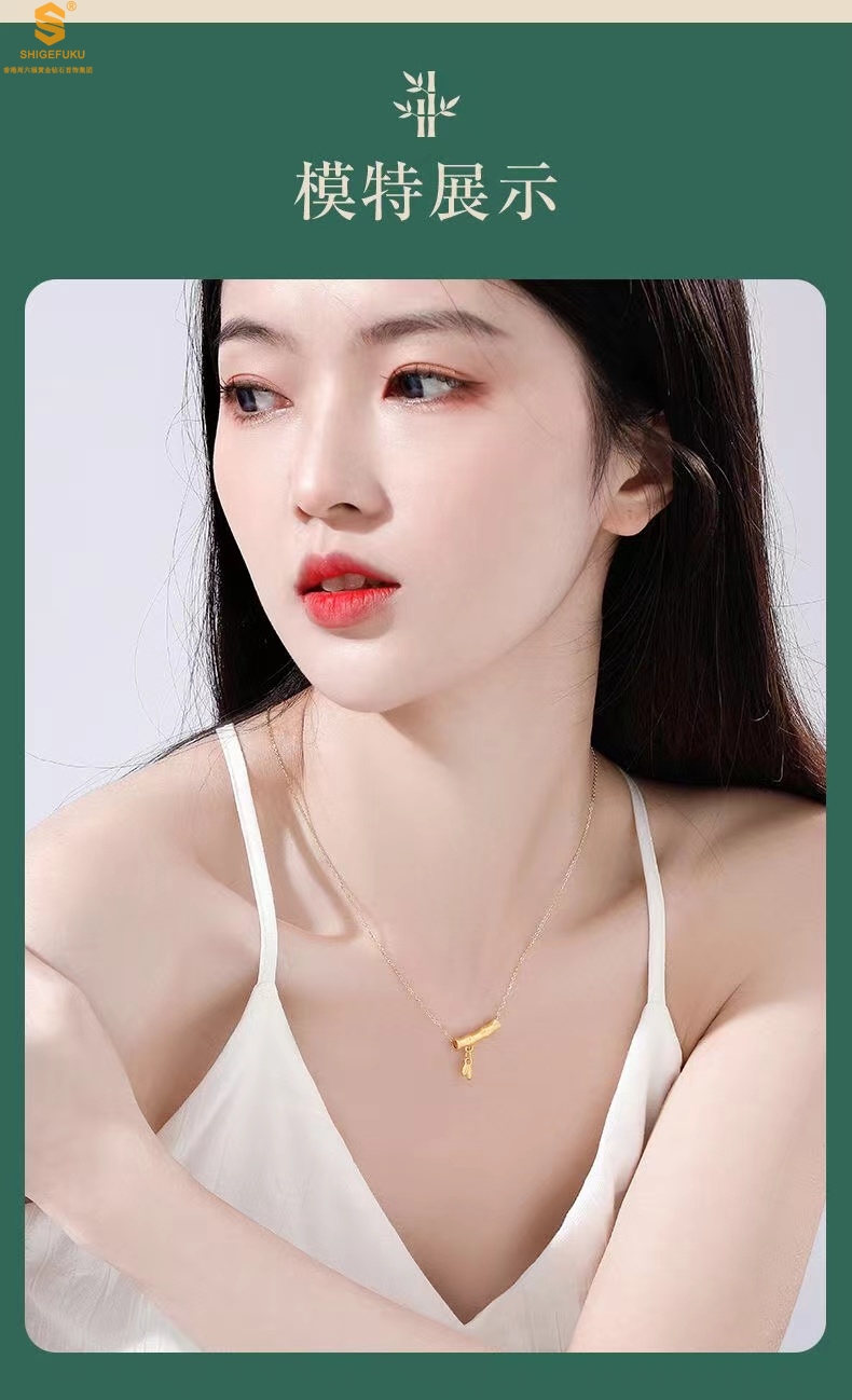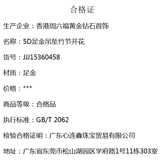 【品名】5D足金吊坠竹节开花(附赠K金项链)